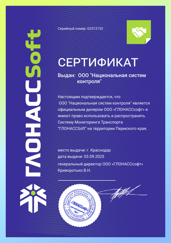 2022 г. подключен софт Программного Обеспечения ГЛОНАСС Мониторинг.
